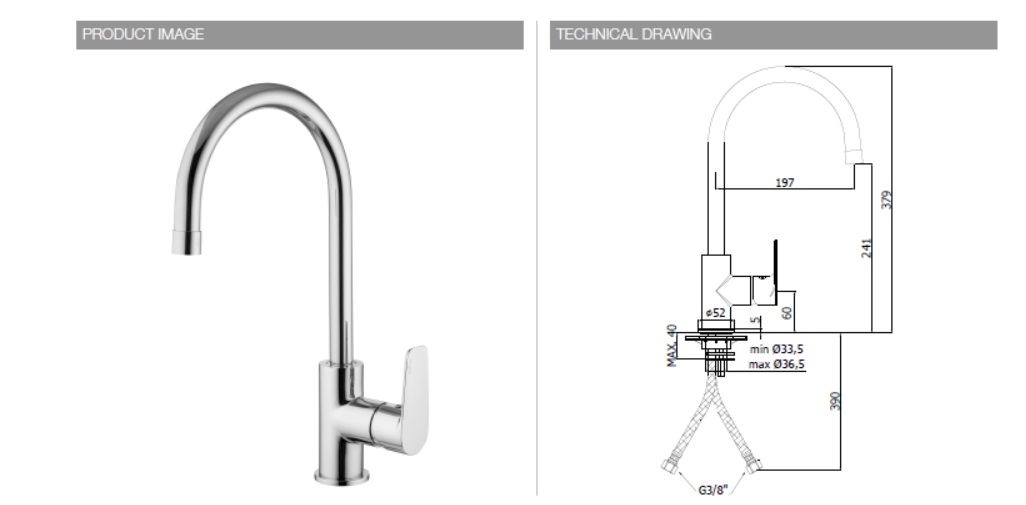 Výška výtoku ramienka: 241mm